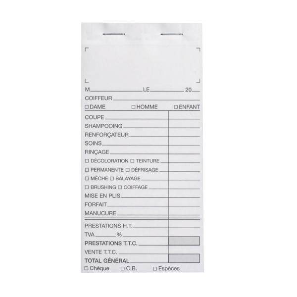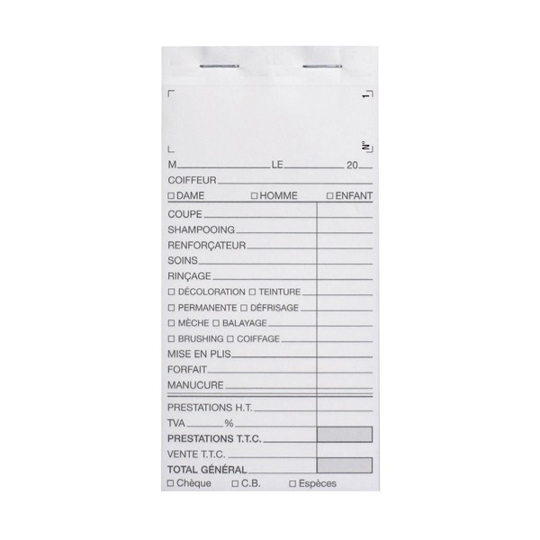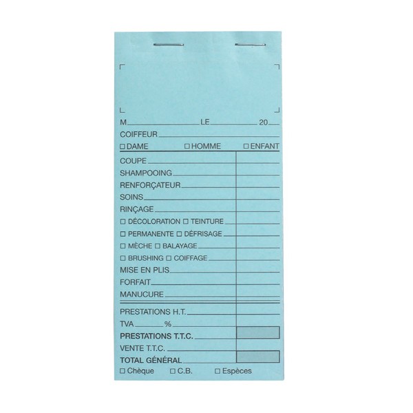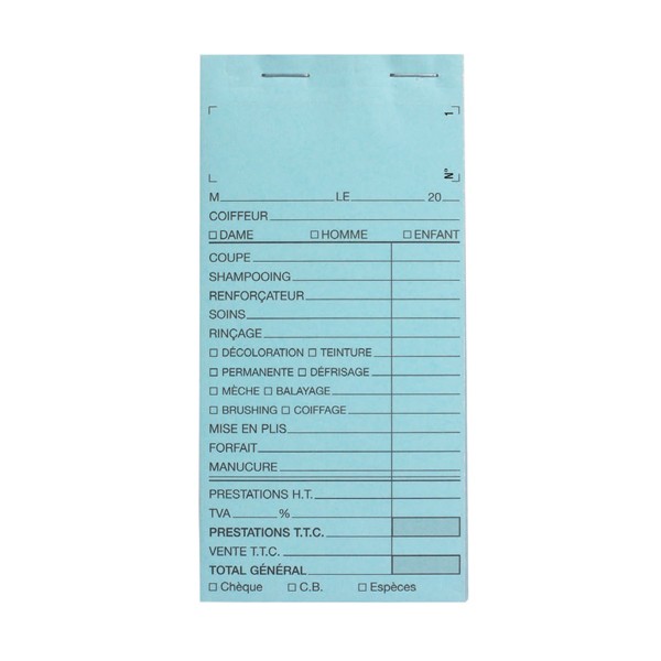 Lot de 10 carnets de caisse pour salon de coiffure précarbonés et numérotés de 1 à 50.