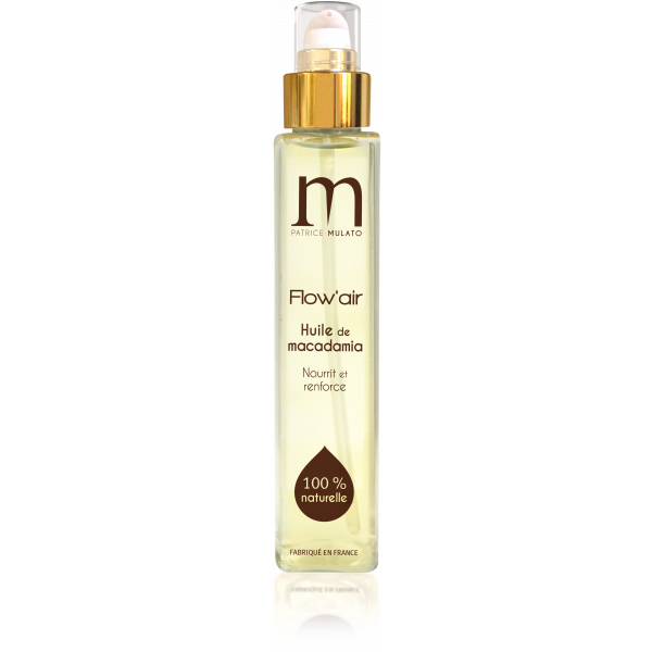 Grâce à sa teneur en acides gras essentiels et à son fort pouvoir de pénétration, l’huile de macadamia Flow’air de Patrice Mulato nourrit intensément la chevelure et régénère la tige capillaire des cheveux secs, abîmés. La richesse de sa texture apporte une nutrition intense et un fini brillant, mais non gras.