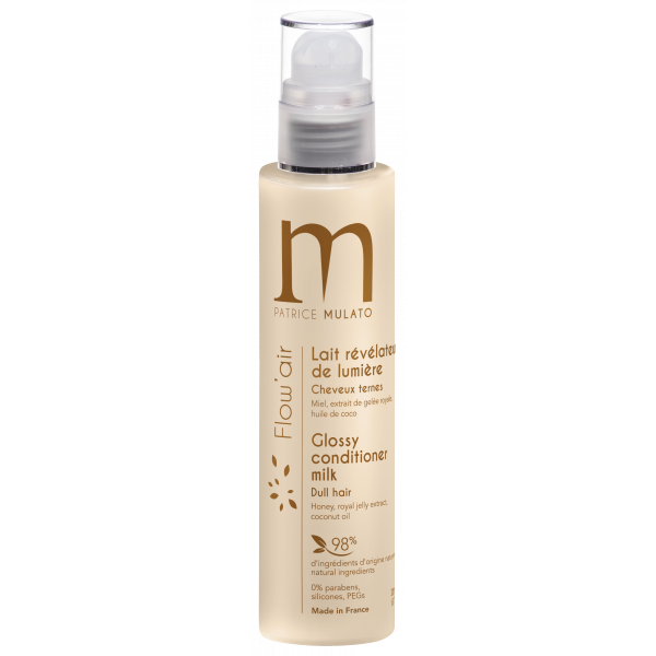 Le lait révélateur de lumière Flow’air de Patrice Mulato redonne une brillance et une luminosité incomparables aux cheveux ternes. Enrichi en extrait de miel aux forts pouvoirs nutritifs et protecteurs, il ravive les reflets & les nuances de la chevelure.