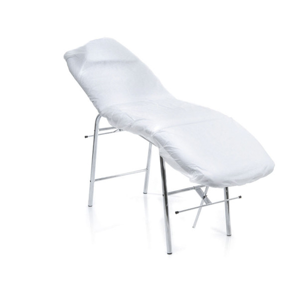 Housse de lit blanche en tissu non-tissé emballé individuellement. sans élastique et avec lacet, dimensions : 90x220cm. Paquet de 10pcs