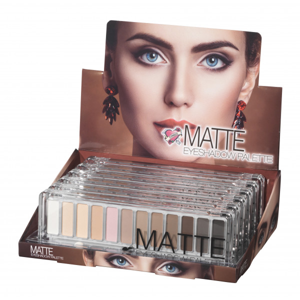 La palette est composée d’un dégradé de 12 nuances mattes inédites et exclusives à base de rose pastel, de poudre, de satin, de pêche marron intense dans des textures mates.