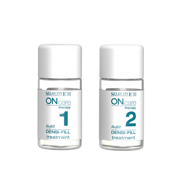 Mélanger dans un récipient Densi-fill n°1 et Densi-fill n°2 jusqu'à formation d'une émulsion. Laisser le mélange reposer quelques minutes pour une activation optimale des principes actifs.